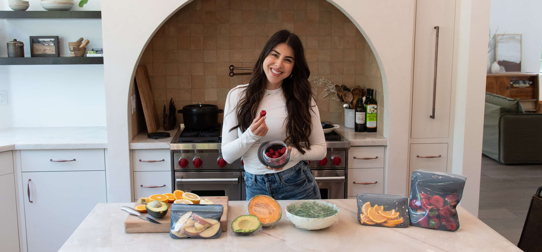 • Reusable Stretch Wrap - “I use these wraps constantly. Any half-eaten fruit or vegetable gets wrapped in one almost every day. I also love using them to cover plates for quick food storage, or if I’m missing a matching lid for a bowl, I’ll throw the stretch wrap on instead!”