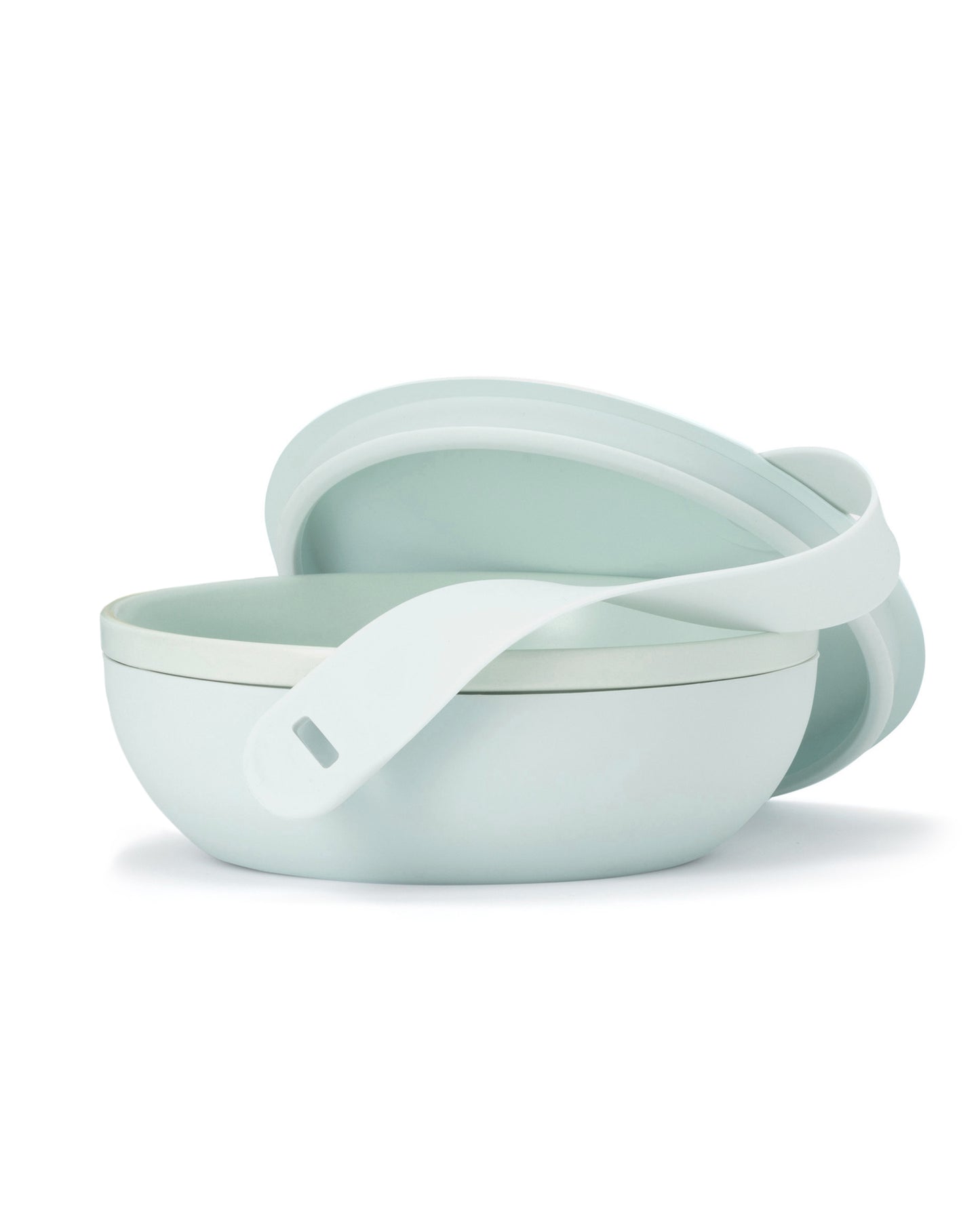 A premium ceramic lunch bowl — tote in style while a silicone strap prevents spills.