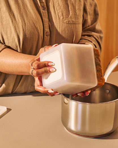• Transparent cubes allow you to see what you're storing (so long, mysterious frozen produce bags) so you can remember what's in your freezer and reduce food waste