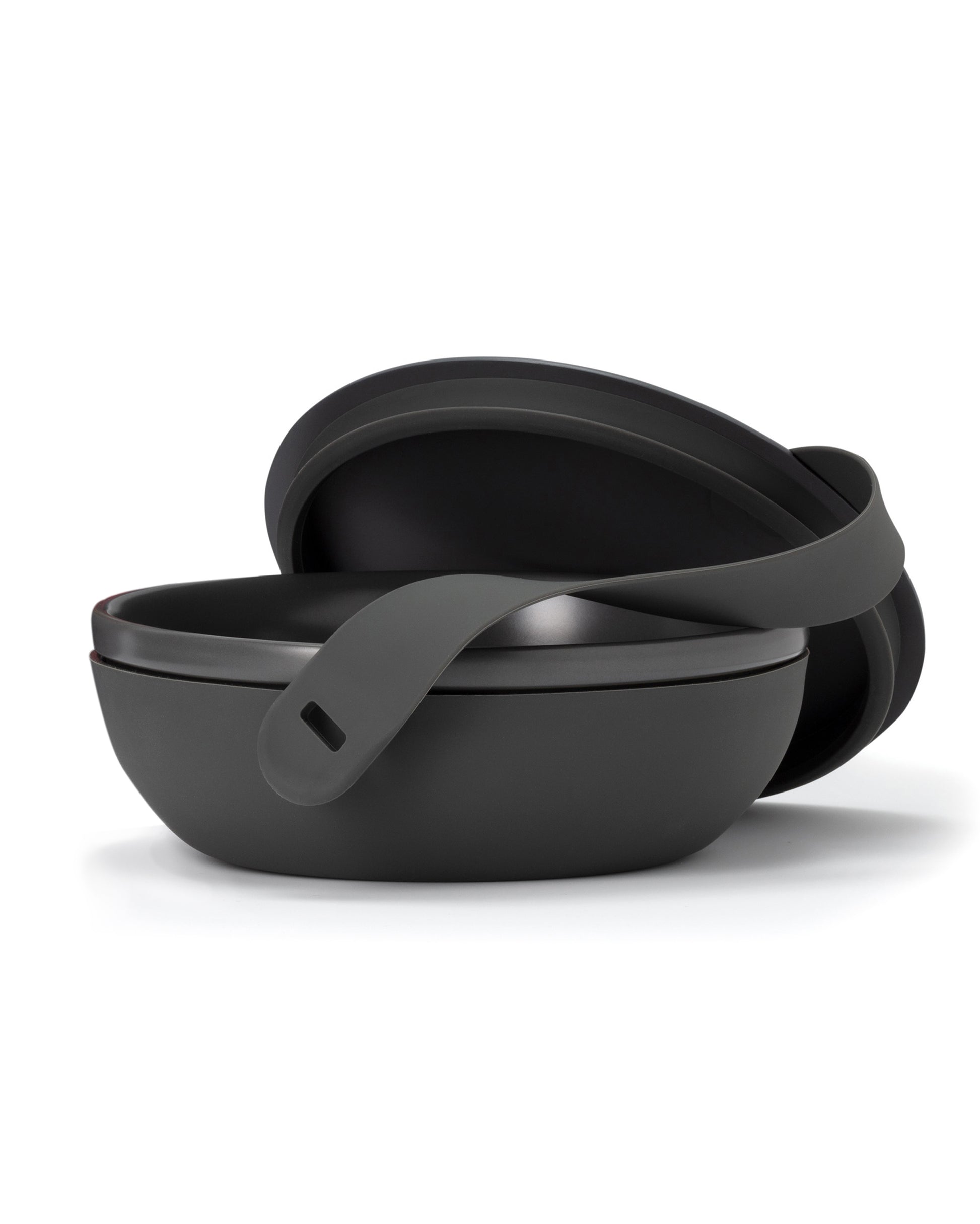 A premium ceramic lunch bowl — tote in style while a silicone strap prevents spills.